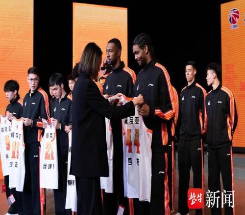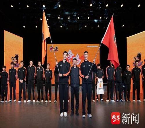 現場授旗環節中,江蘇省體育局籃球運動管理中心主任胡衛權將象征隊伍使命與榮譽的旗幟鄭重授予隊長吳羽佳和蔣浩然。在主持人的帶領下,全體隊員和現場觀眾一起大聲喊出“江蘇江蘇、戰?戰?!”洪亮的口號聲響徹全場,展現了全隊上下齊心、劍指新賽季的決心。
